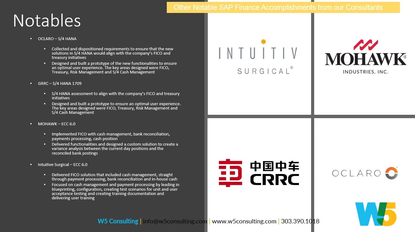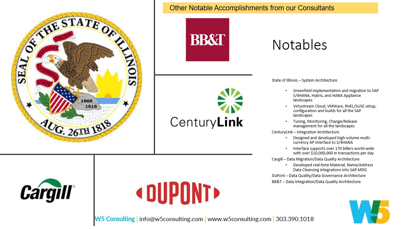 W5 has consistently demonstrated exceptional proficiency in delivering complex ERP solutions across various sectors. Our expertise encompasses a wide array of challenging scenarios, from migrating petroleum storage and handling companies to SAP HEC Cloud for Oil and Gas, to streamlining financial processes and GL account management using S/4 HANA and MDG for major corporations. We have successfully tackled intricate system architectures in the energy sector, conducted significant data platform optimizations to enhance performance and data management, and managed critical transitions to updated ERP systems in healthcare. In each case, W5 has ensured minimal system downtime, adherence to regulatory standards, and optimization of internal data systems for enhanced performance and reporting accuracy. Our diverse project portfolio showcases our ability to navigate and optimize complex ERP landscapes, delivering tailored solutions that drive efficiency and clarity in business operations.